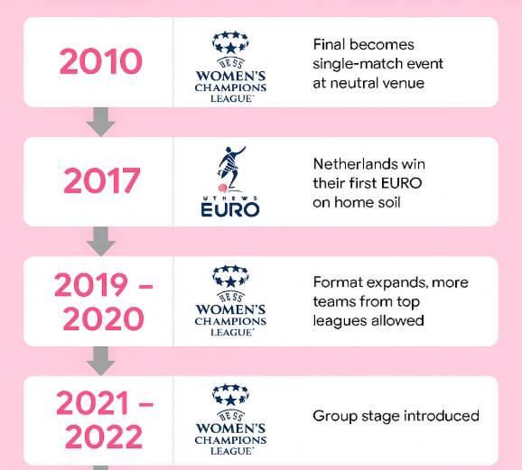 Women’s continental football was more predictable before the UEFA reforms of 2026. Things changed, however, between 2010 and 2025. The evolution was slow but undoubtedly steady. The highlights of this period of growth are in the image below.